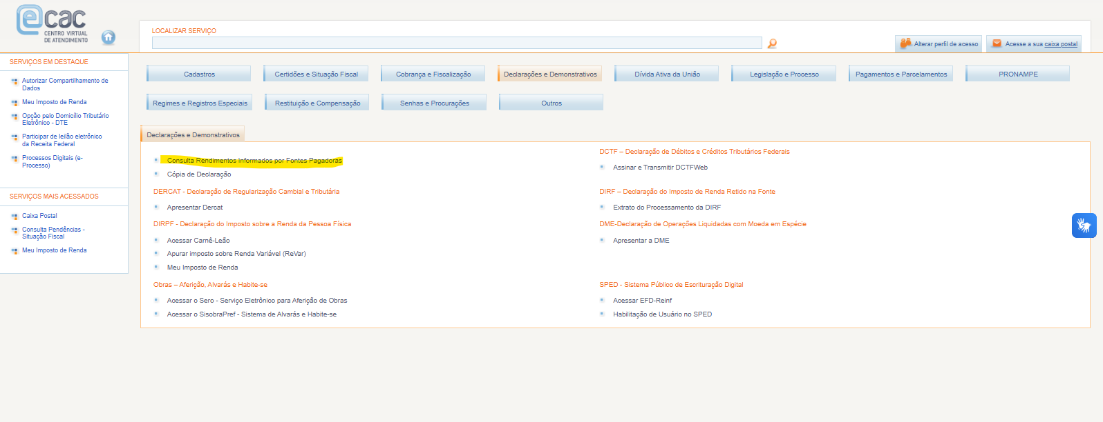 PASSO A PASSO PARA CONSULTAR INFORME DE RENDIMENTOS NO E-CAC